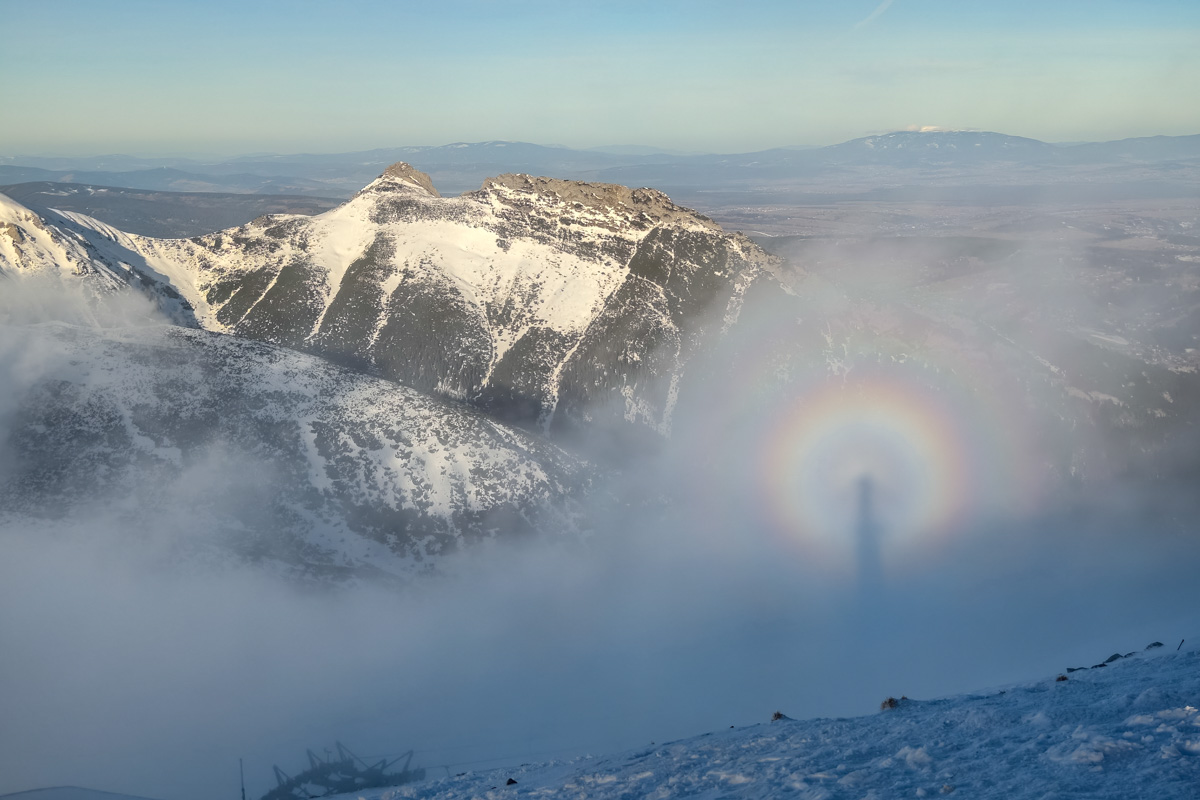 Dzięki niskiemu pułapowi warstwy chmur udało się uwiecznić na zdjęciu Widmo Brockenu.