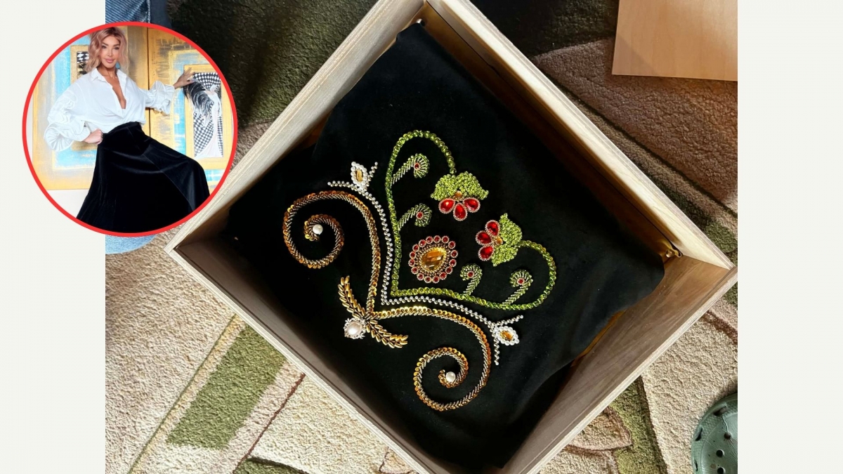 Zgodnie z tą ideą powstał projekt czarnej, aksamitnej spódnicy. Materiał ozdobiły kwiaty, zawijasy i kłosy wyhaftowane koralikami przez Annę Sarnowską i jej przyjaciółkę - Monikę Skowyrę. Artystki miały całkowitą swobodę twórczą. Proces wyszywania zajął im tydzień. Wyhaftowaną już spódnicę zszyła krawcowa z Olczy - Dorota Gawlak.