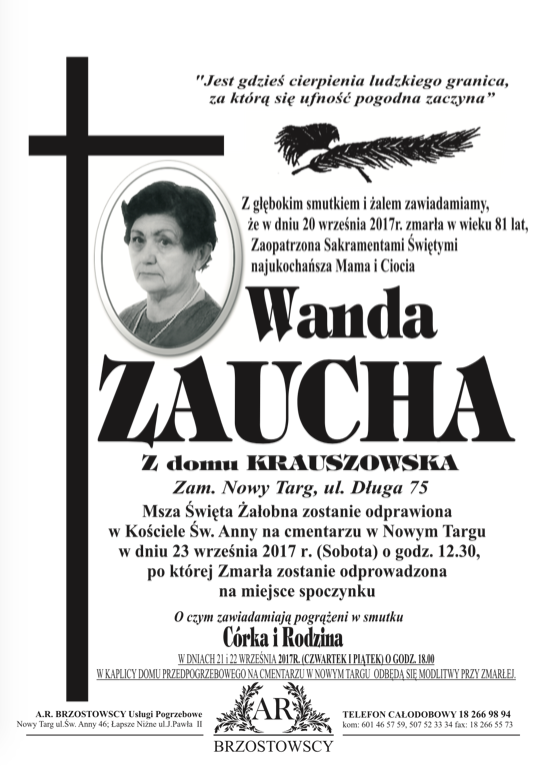 Wanda Zaucha - Nekrologi - podhale24.pl