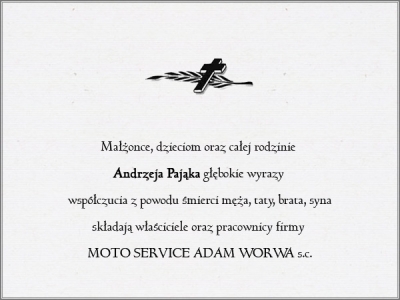 Podhale24.pl zastrzega sobie prawo do nie publikowania wspomnień, w szczególności tych nie związanych z profilem działu nekrologi, zawierających wulgaryzmy, wzywających do zachowań niezgodnych z prawem, obrażających osoby publiczne i prywatne, obrażających inne narodowości, rasy, religie itd, oraz te, bez możliwości telefonicznej lub mailowej weryfikacji ich autora.