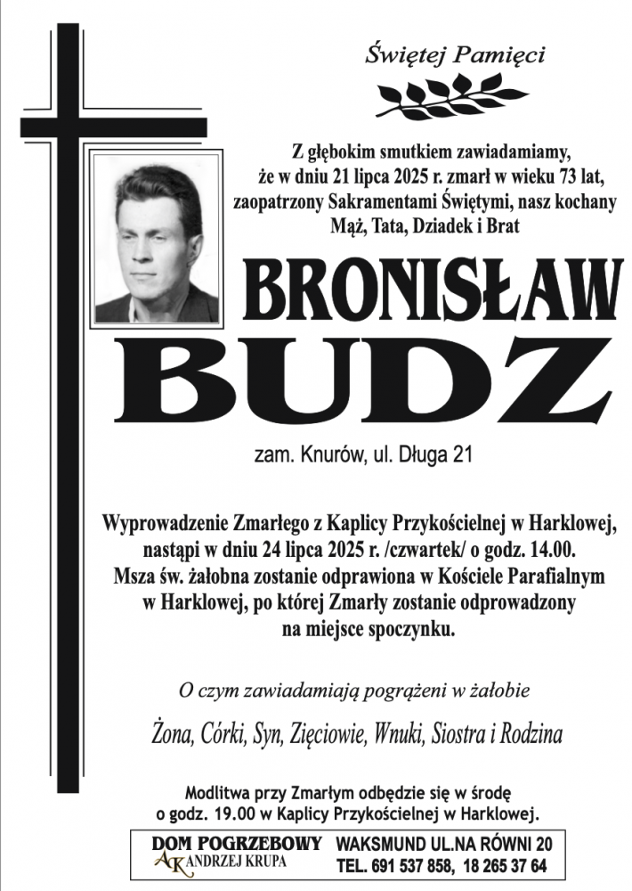 Bronisław Budz - Nekrologi - podhale24.pl