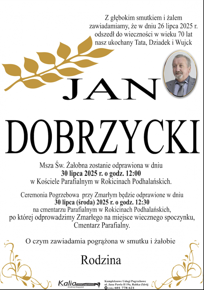 Jan Dobrzycki - Nekrologi - podhale24.pl