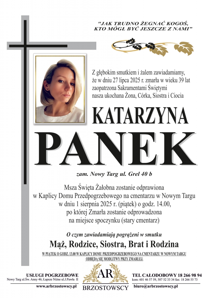 Katarzyna Panek - Nekrologi - podhale24.pl