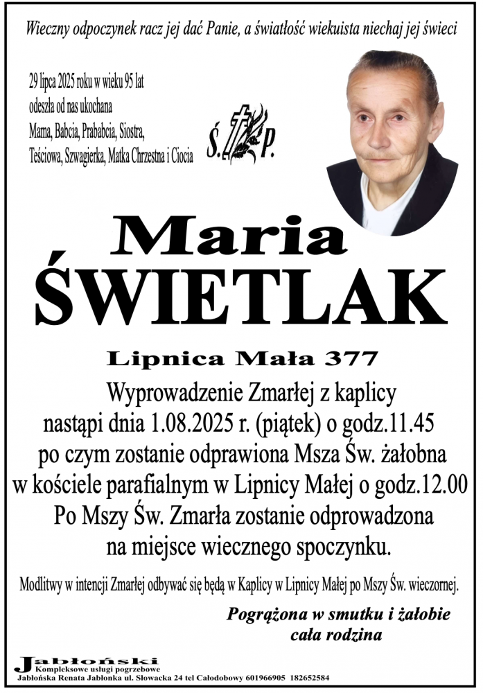 Podhale24.pl zastrzega sobie prawo do nie publikowania wspomnień, w szczególności tych nie związanych z profilem działu nekrologi, zawierających wulgaryzmy, wzywających do zachowań niezgodnych z prawem, obrażających osoby publiczne i prywatne, obrażających inne narodowości, rasy, religie itd, oraz te, bez możliwości telefonicznej lub mailowej weryfikacji ich autora.
