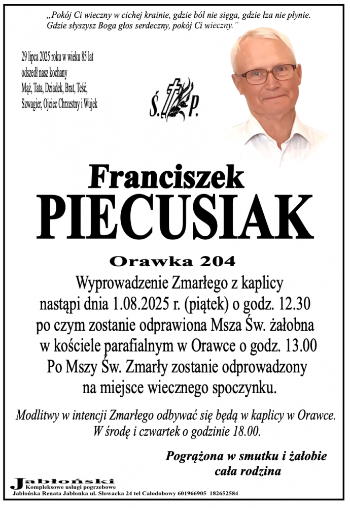 Franciszek Piecusiak - Nekrologi - podhale24.pl