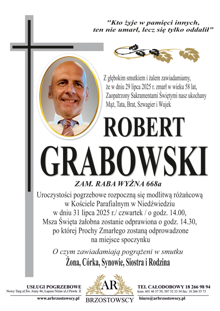Podhale24.pl zastrzega sobie prawo do nie publikowania wspomnień, w szczególności tych nie związanych z profilem działu nekrologi, zawierających wulgaryzmy, wzywających do zachowań niezgodnych z prawem, obrażających osoby publiczne i prywatne, obrażających inne narodowości, rasy, religie itd, oraz te, bez możliwości telefonicznej lub mailowej weryfikacji ich autora.