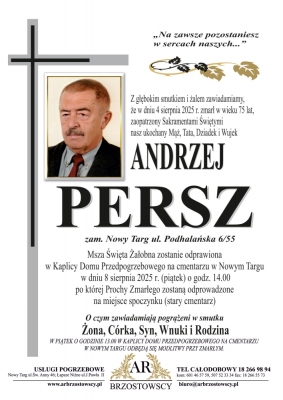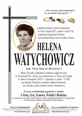 Podhale24.pl zastrzega sobie prawo do nie publikowania wspomnień, w szczególności tych nie związanych z profilem działu nekrologi, zawierających wulgaryzmy, wzywających do zachowań niezgodnych z prawem, obrażających osoby publiczne i prywatne, obrażających inne narodowości, rasy, religie itd, oraz te, bez możliwości telefonicznej lub mailowej weryfikacji ich autora.