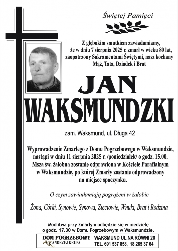Jan Waksmundzki - Nekrologi - podhale24.pl