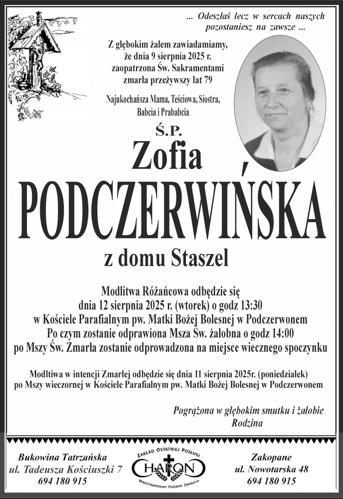 Zofia Podczerwińska - Nekrologi - podhale24.pl