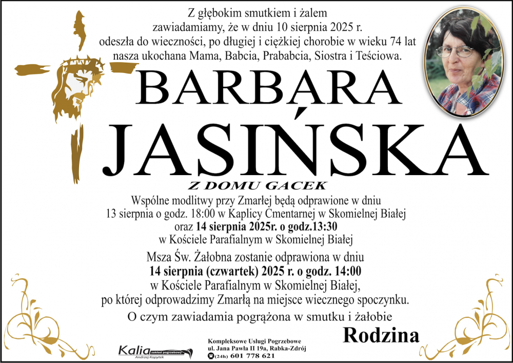 Barbara Jasińska - Nekrologi - podhale24.pl