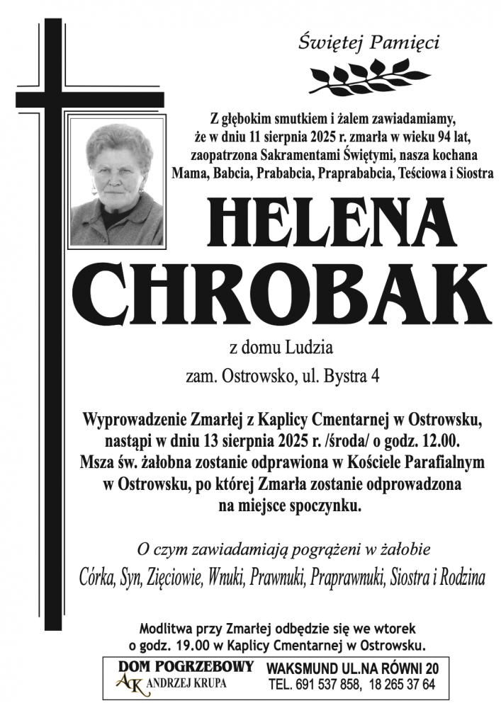 Helena Chrobak - Nekrologi - podhale24.pl