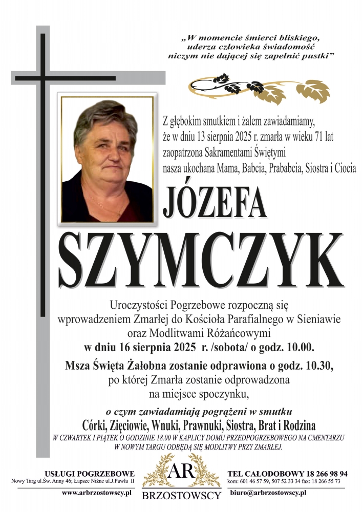 Józefa Szymczyk - Nekrologi - podhale24.pl