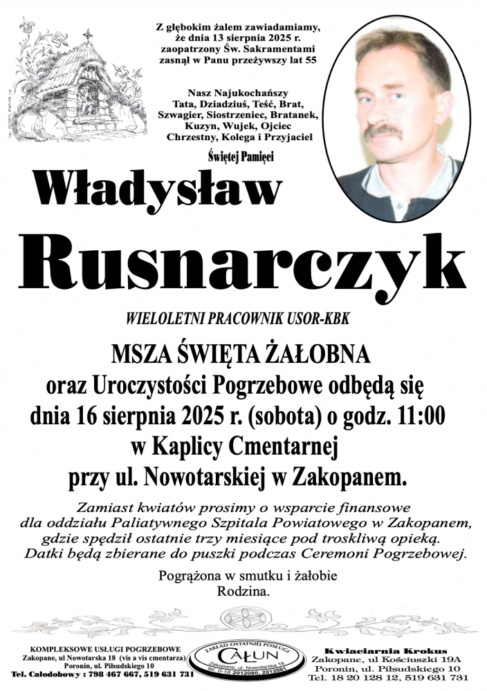 Władysław Rusnarczyk - Nekrologi - podhale24.pl