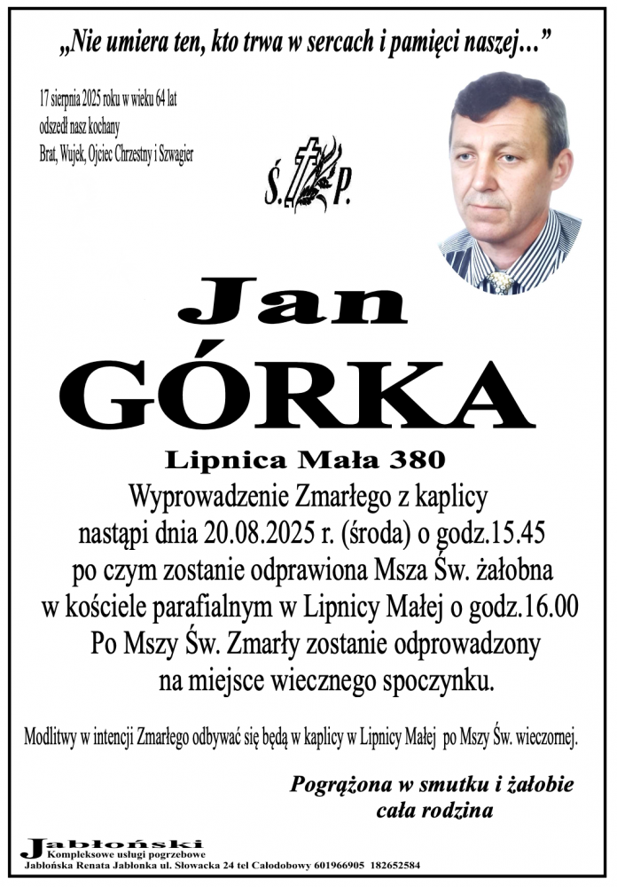 Jan Górka - Nekrologi - podhale24.pl