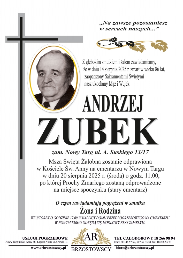 Andrzej Zubek - Nekrologi - podhale24.pl