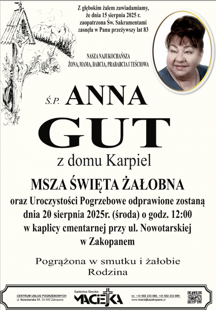 Anna Gut - Nekrologi - podhale24.pl