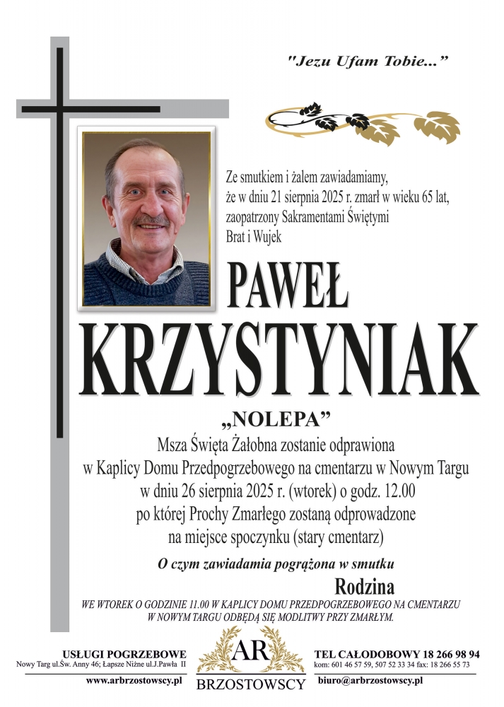 Paweł Krzystyniak - Nekrologi - podhale24.pl