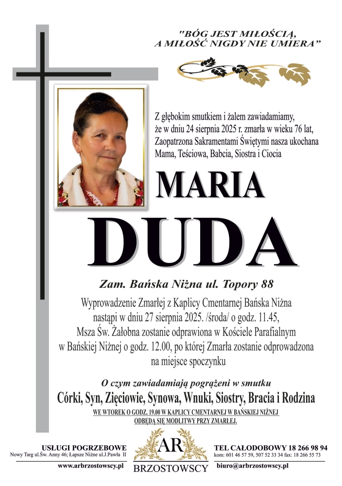 Maria Duda - Nekrologi - podhale24.pl