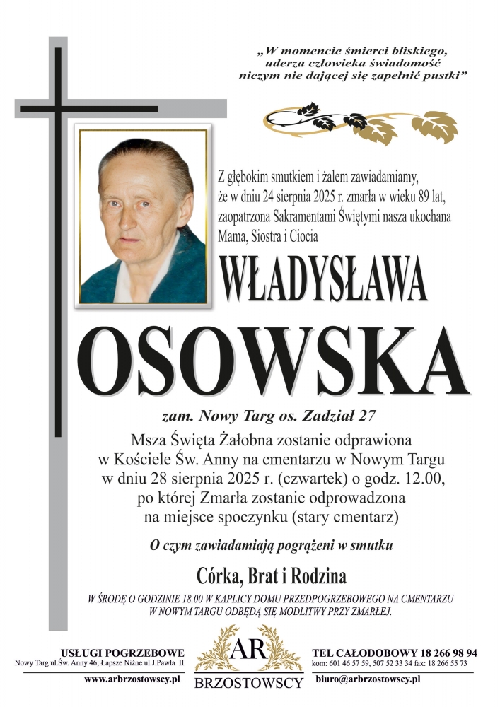 Władysława Osowska - Nekrologi - podhale24.pl