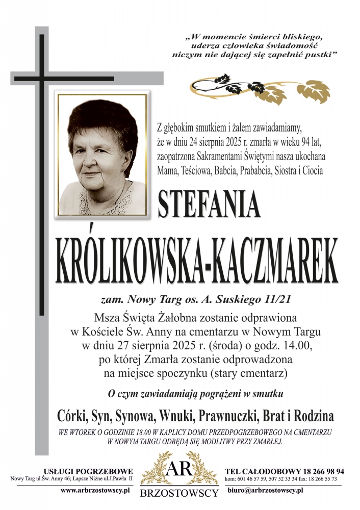 Strefania Królikowska-Kaczmarek - Nekrologi - podhale24.pl