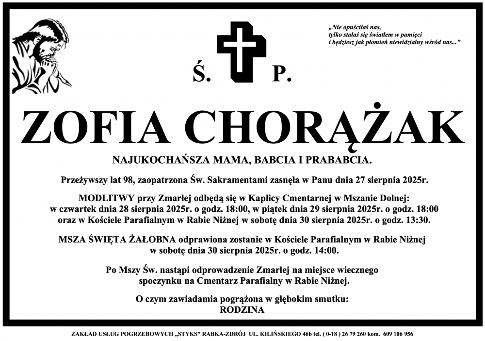 Zofia Chorążak - Nekrologi - podhale24.pl