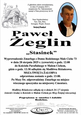 Podhale24.pl zastrzega sobie prawo do nie publikowania wspomnień, w szczególności tych nie związanych z profilem działu nekrologi, zawierających wulgaryzmy, wzywających do zachowań niezgodnych z prawem, obrażających osoby publiczne i prywatne, obrażających inne narodowości, rasy, religie itd, oraz te, bez możliwości telefonicznej lub mailowej weryfikacji ich autora.