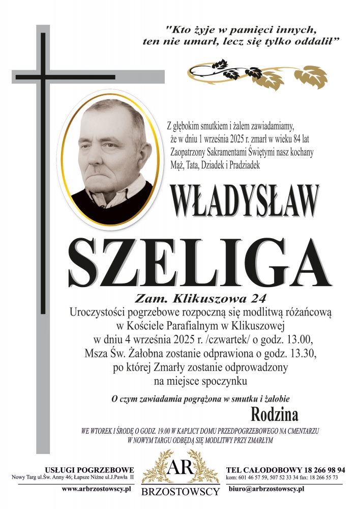 Władysław Szeliga - Nekrologi - podhale24.pl