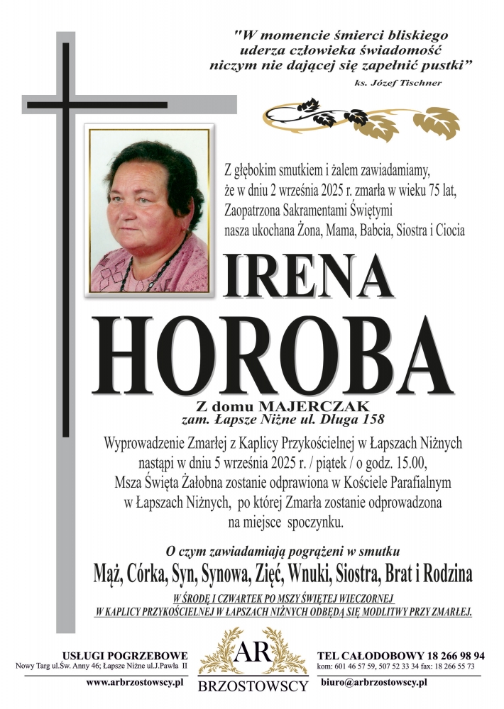 Podhale24.pl zastrzega sobie prawo do nie publikowania wspomnień, w szczególności tych nie związanych z profilem działu nekrologi, zawierających wulgaryzmy, wzywających do zachowań niezgodnych z prawem, obrażających osoby publiczne i prywatne, obrażających inne narodowości, rasy, religie itd, oraz te, bez możliwości telefonicznej lub mailowej weryfikacji ich autora.