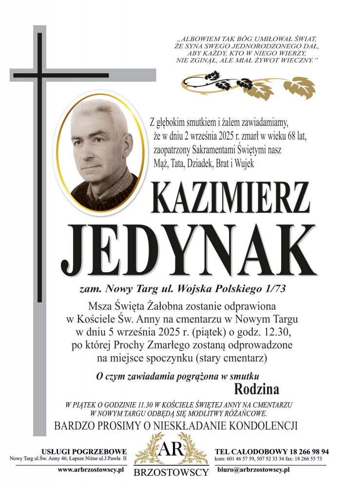Kazimierz Jedynak - Nekrologi - podhale24.pl