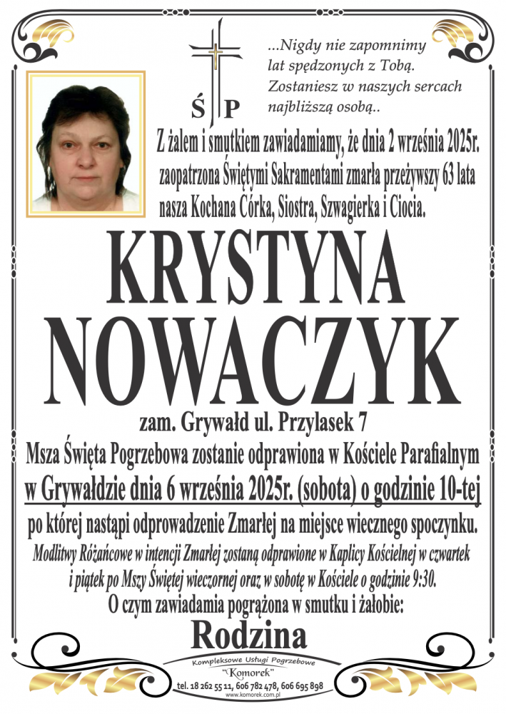 Krystyna Nowaczyk - Nekrologi - podhale24.pl