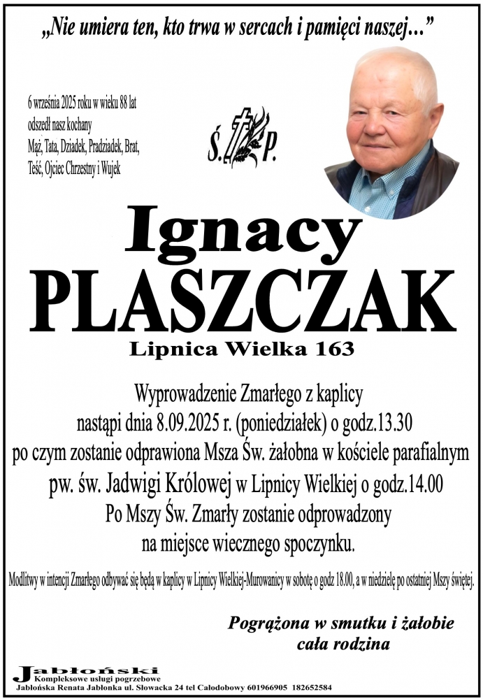 Ignacy Płaszczak - Nekrologi - podhale24.pl
