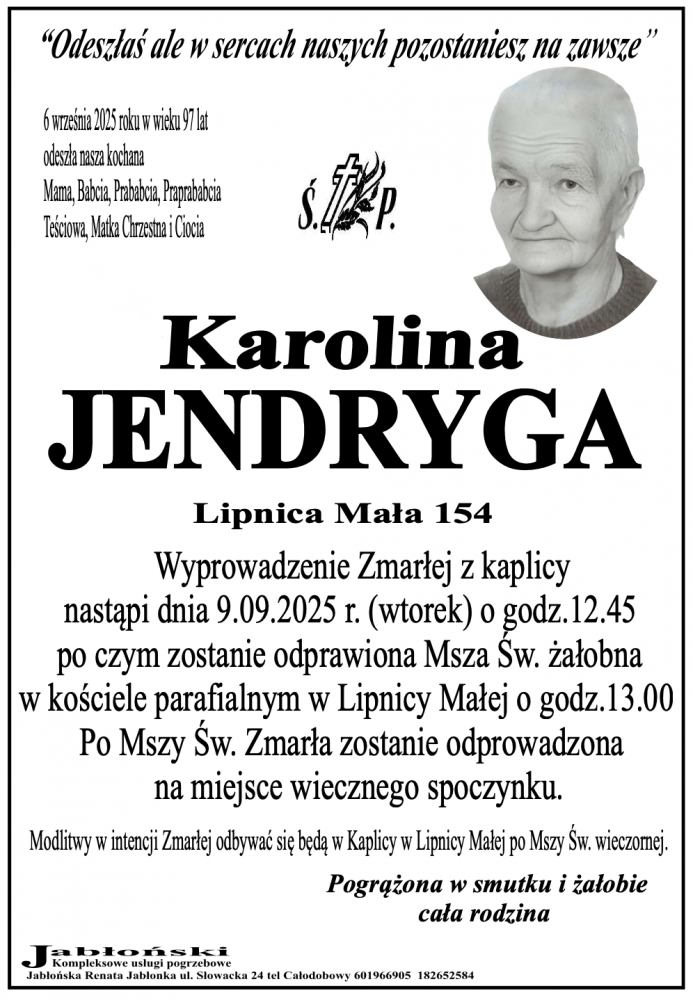 Karolicna Jendryga - Nekrologi - podhale24.pl