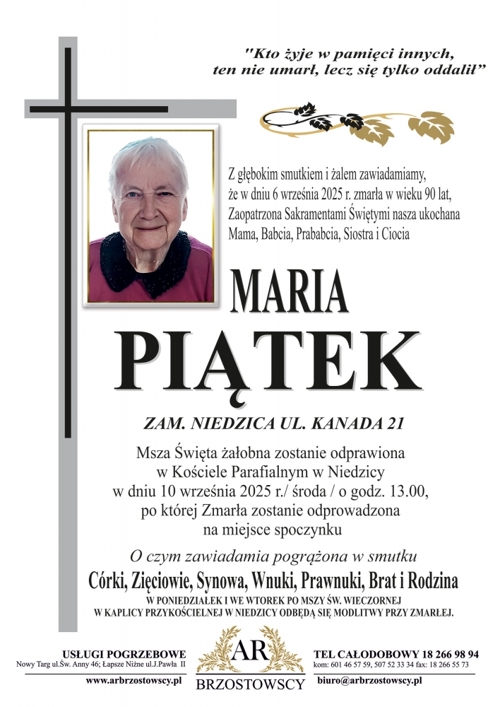 Maria Piątek - Nekrologi - podhale24.pl