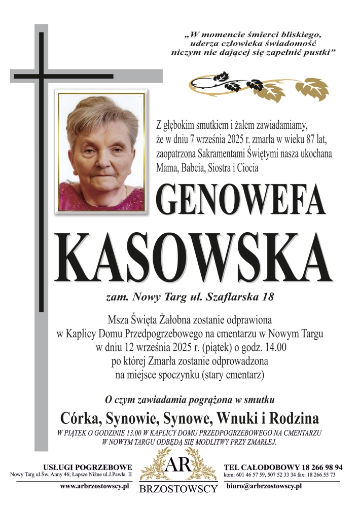 Genowefa Kasowska - Nekrologi - podhale24.pl