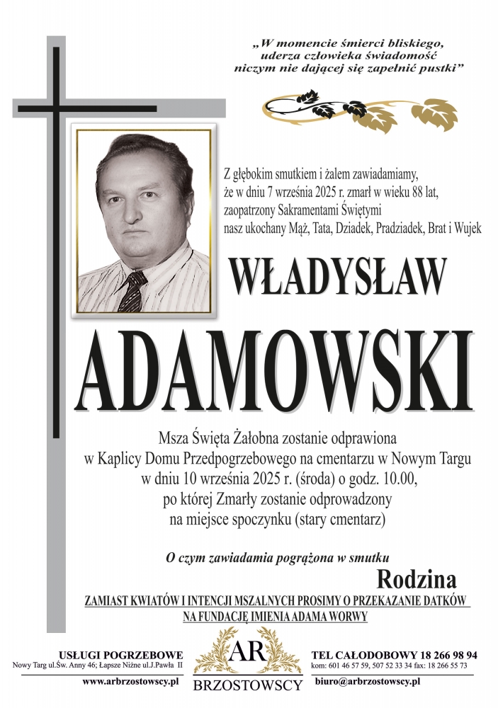Władysław Adamowski - Nekrologi - podhale24.pl