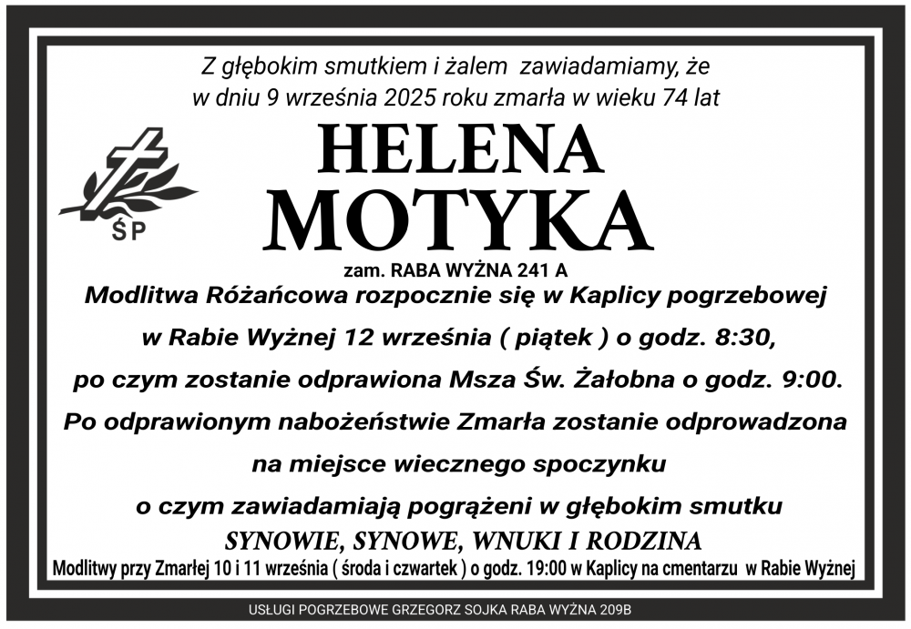 Helena Motyka - Nekrologi - podhale24.pl