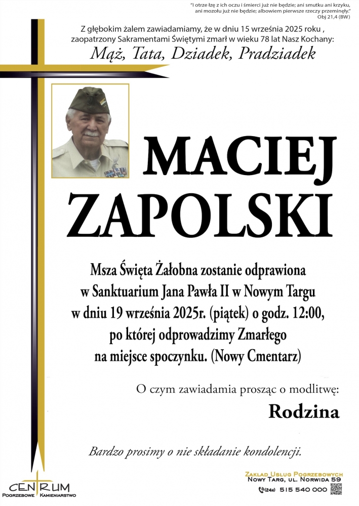 Maciej Zapolski - Nekrologi - podhale24.pl
