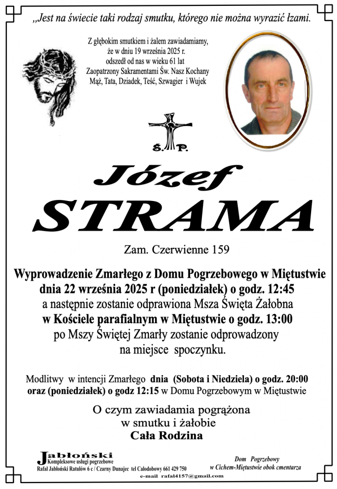Podhale24.pl zastrzega sobie prawo do nie publikowania wspomnień, w szczególności tych nie związanych z profilem działu nekrologi, zawierających wulgaryzmy, wzywających do zachowań niezgodnych z prawem, obrażających osoby publiczne i prywatne, obrażających inne narodowości, rasy, religie itd, oraz te, bez możliwości telefonicznej lub mailowej weryfikacji ich autora.
