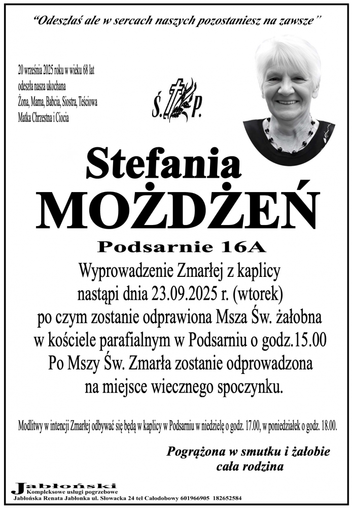 Stefania Możdżeń - Nekrologi - podhale24.pl