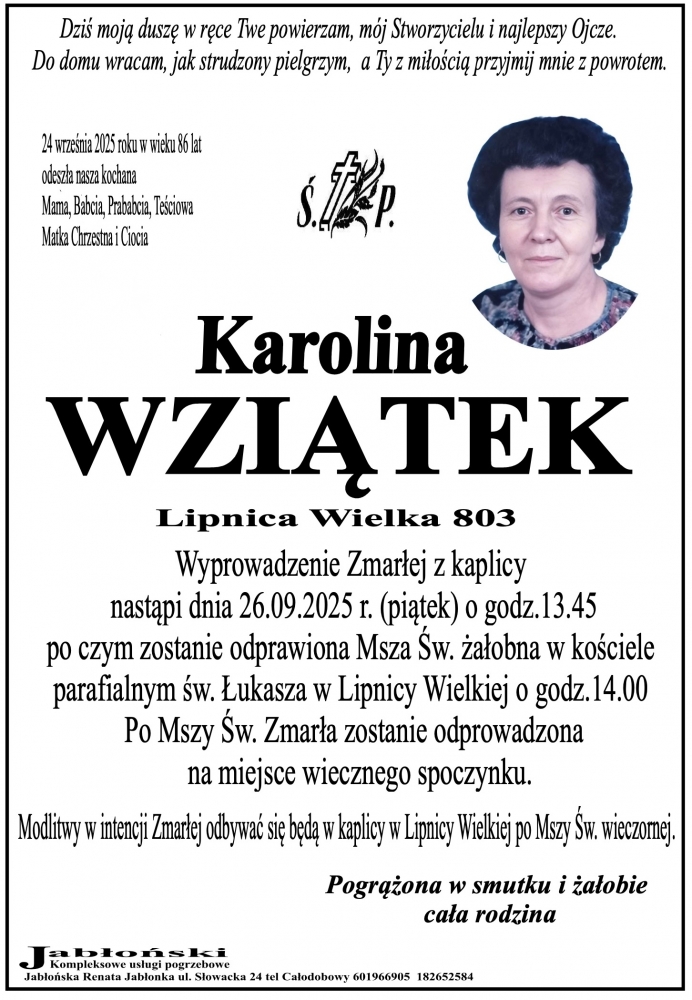 Karolina Wziątek - Nekrologi - podhale24.pl