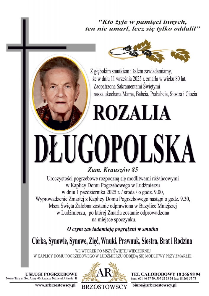Rozalia Długopolska - Nekrologi - podhale24.pl