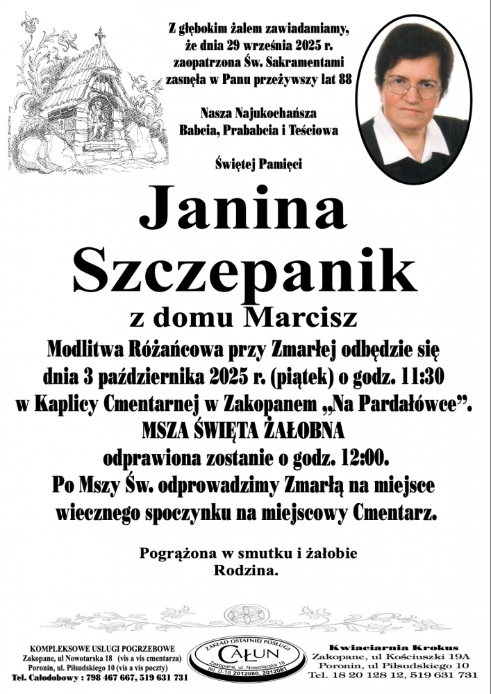Janina Szczepanik - Nekrologi - podhale24.pl