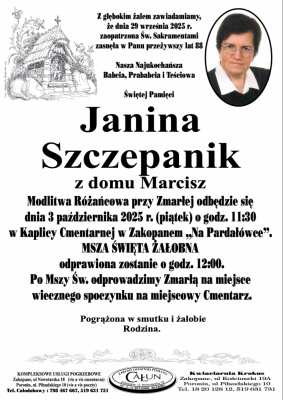 Podhale24.pl zastrzega sobie prawo do nie publikowania wspomnień, w szczególności tych nie związanych z profilem działu nekrologi, zawierających wulgaryzmy, wzywających do zachowań niezgodnych z prawem, obrażających osoby publiczne i prywatne, obrażających inne narodowości, rasy, religie itd, oraz te, bez możliwości telefonicznej lub mailowej weryfikacji ich autora.