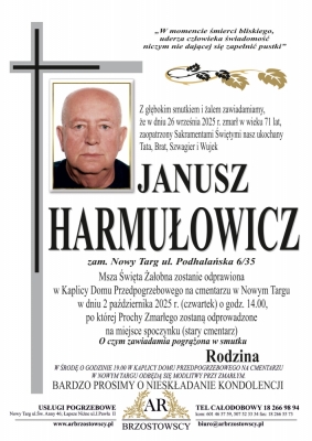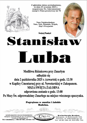 Podhale24.pl zastrzega sobie prawo do nie publikowania wspomnień, w szczególności tych nie związanych z profilem działu nekrologi, zawierających wulgaryzmy, wzywających do zachowań niezgodnych z prawem, obrażających osoby publiczne i prywatne, obrażających inne narodowości, rasy, religie itd, oraz te, bez możliwości telefonicznej lub mailowej weryfikacji ich autora.