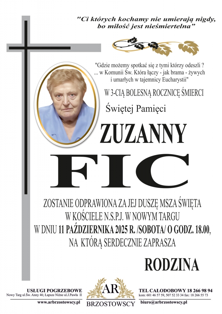 Zuzanna Fic - Nekrologi - podhale24.pl