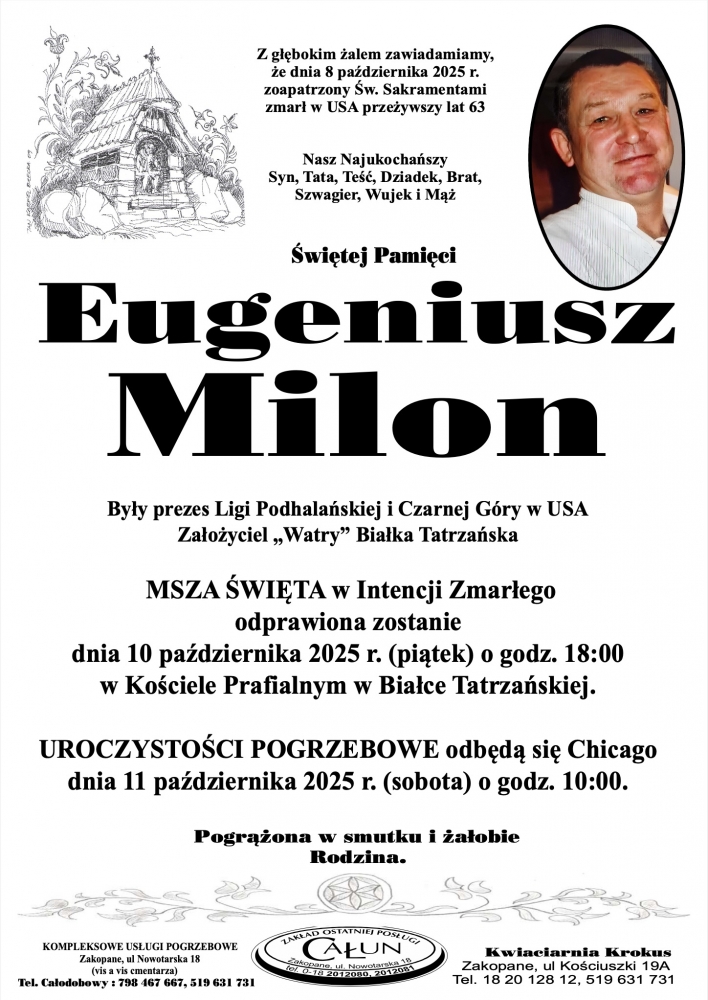 Eugeniusz Milion - Nekrologi - podhale24.pl
