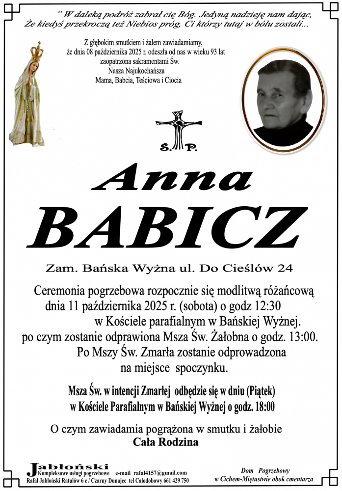Podhale24.pl zastrzega sobie prawo do nie publikowania wspomnień, w szczególności tych nie związanych z profilem działu nekrologi, zawierających wulgaryzmy, wzywających do zachowań niezgodnych z prawem, obrażających osoby publiczne i prywatne, obrażających inne narodowości, rasy, religie itd, oraz te, bez możliwości telefonicznej lub mailowej weryfikacji ich autora.