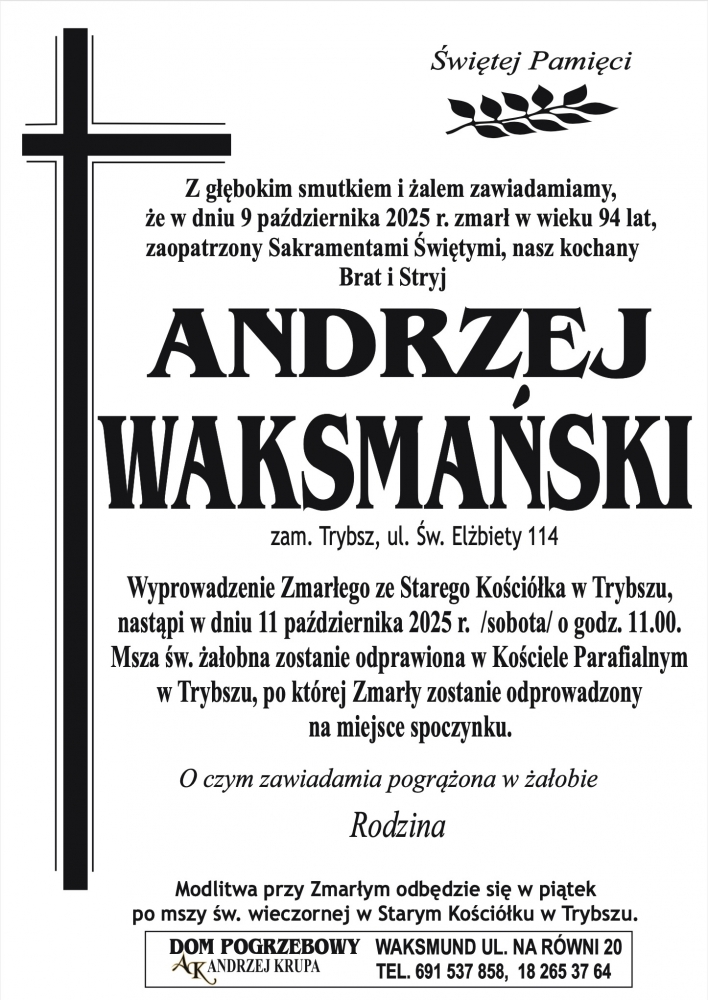 Andrzej Waksmański - Nekrologi - podhale24.pl