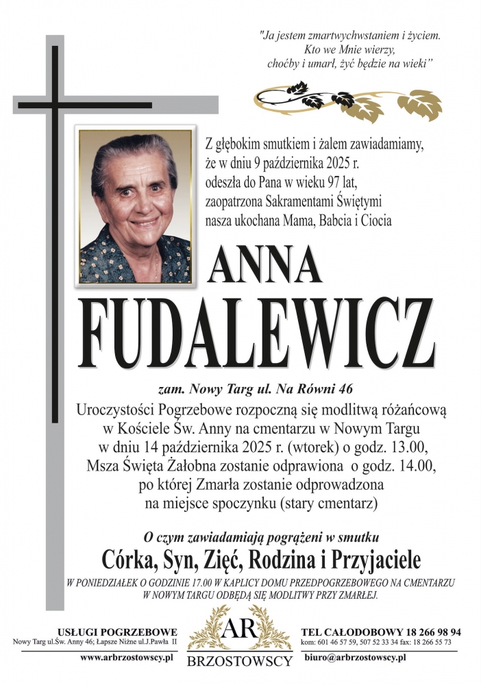 Anna Fudalewicz - Nekrologi - podhale24.pl