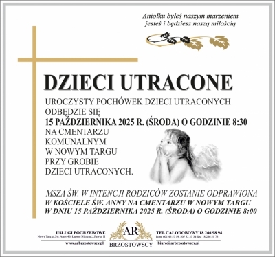 Podhale24.pl zastrzega sobie prawo do nie publikowania wspomnień, w szczególności tych nie związanych z profilem działu nekrologi, zawierających wulgaryzmy, wzywających do zachowań niezgodnych z prawem, obrażających osoby publiczne i prywatne, obrażających inne narodowości, rasy, religie itd, oraz te, bez możliwości telefonicznej lub mailowej weryfikacji ich autora.